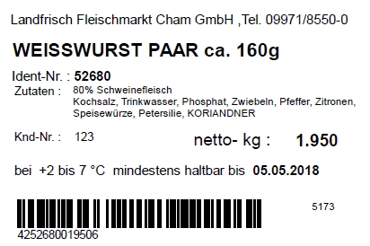 - Etikettieren von Wurst-Artikeln (lose Ware od. vakuumiert)