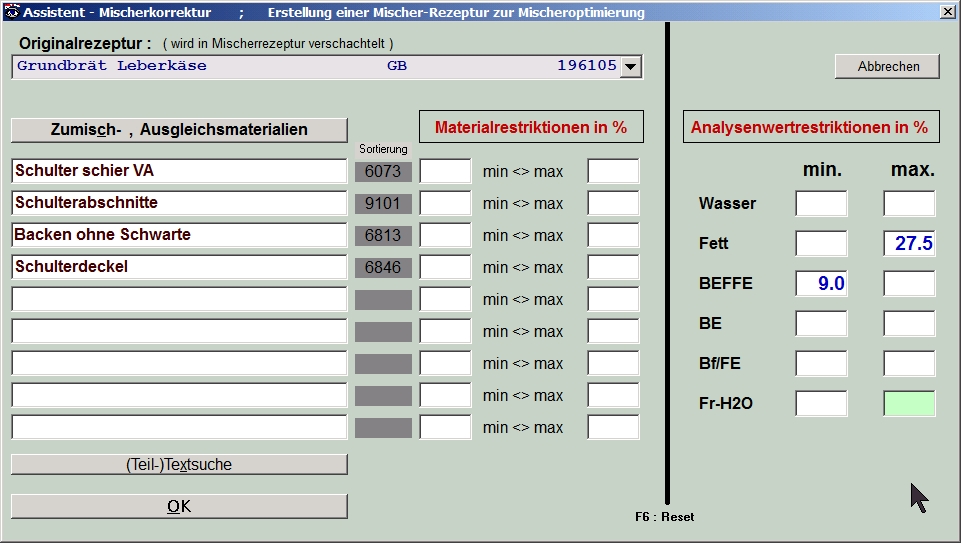 Rezepturoptimierung , (inklusive Normaloptimierungen!)