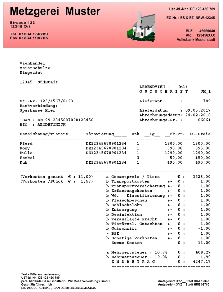 - Schlachtviehabrechnung