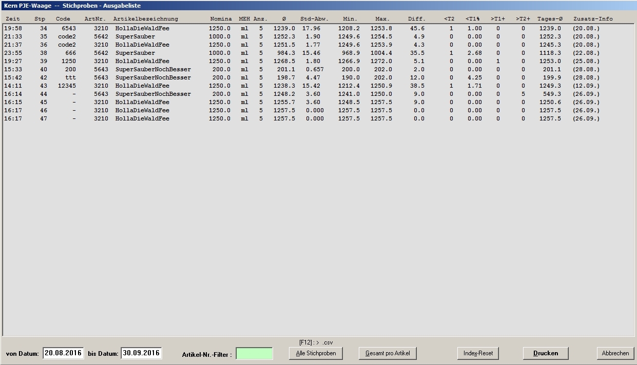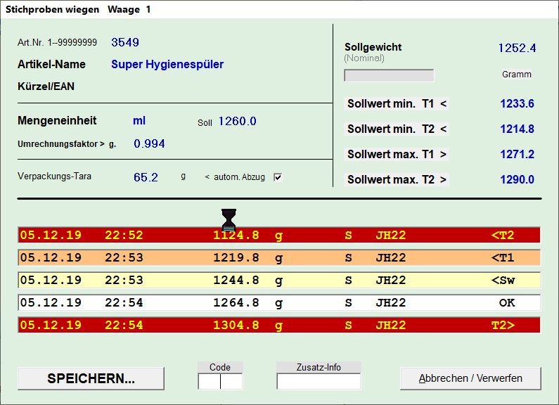 S O L L W I E G E N _ mit _ Berechnung der Standardabweichung