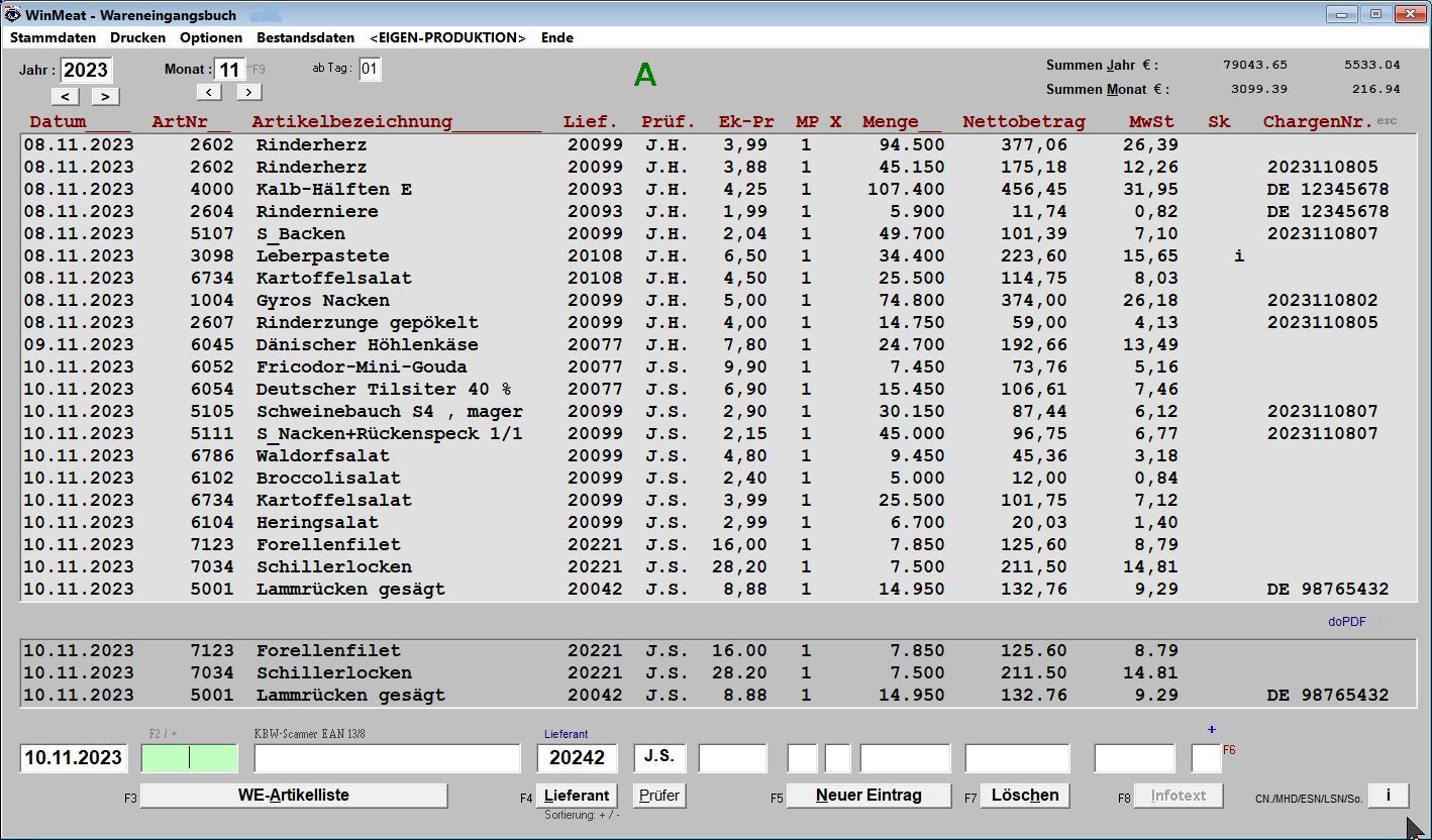 Bestandsdatenverwaltung für eigen produzierte Ware