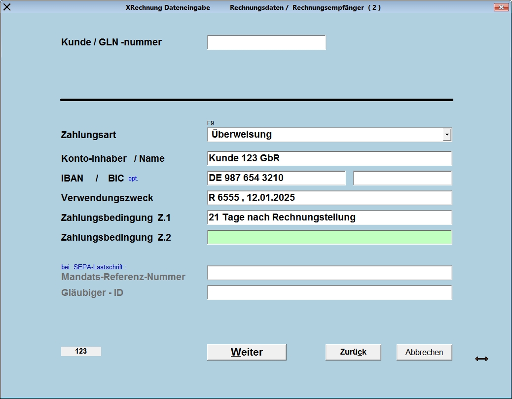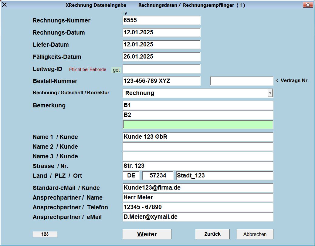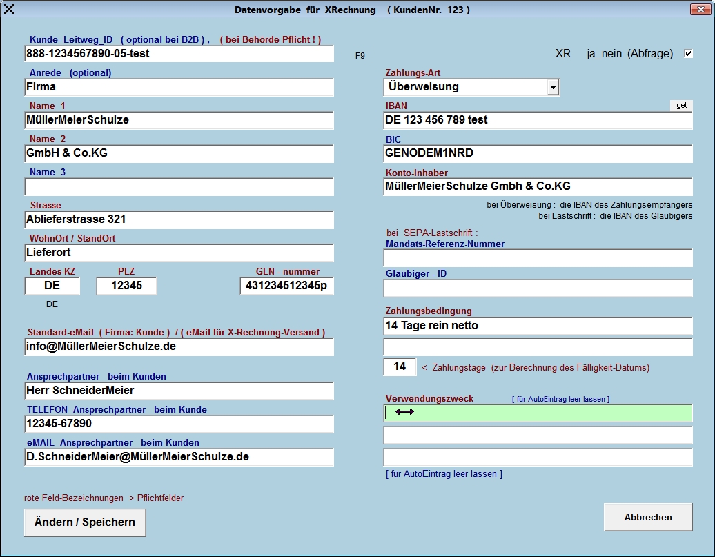 Daten-Eingabe und Generierung einer XRechnung - - - Daten : Kunde / Rechnungsempfänger