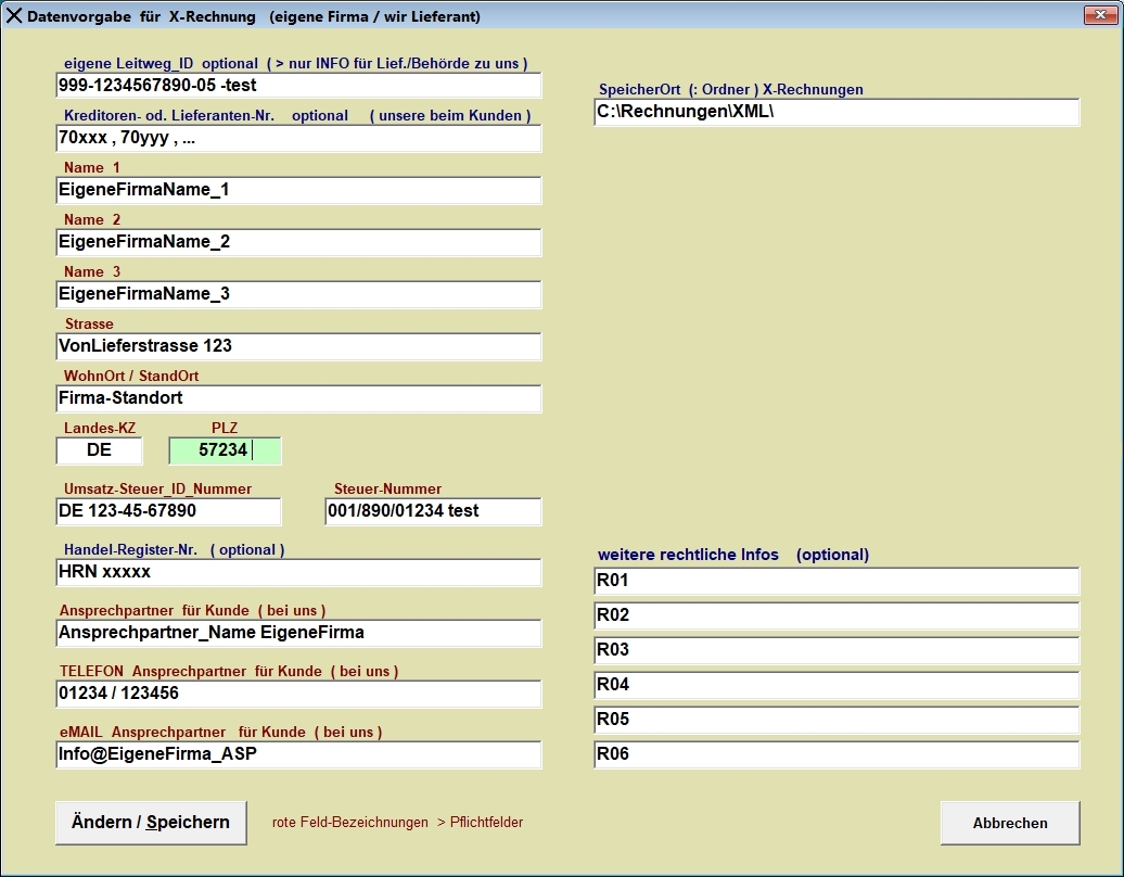 Daten-Eingabe und Generierung einer XRechnung - - - Daten : Rechnungssteller