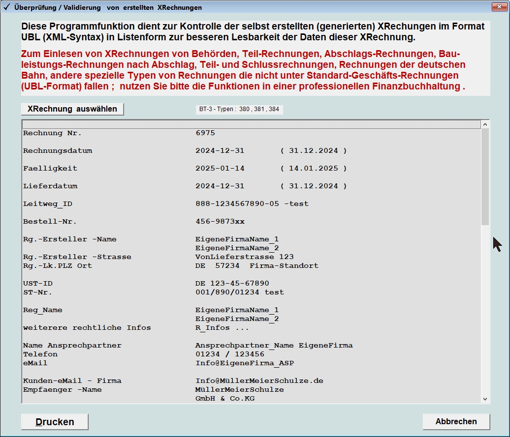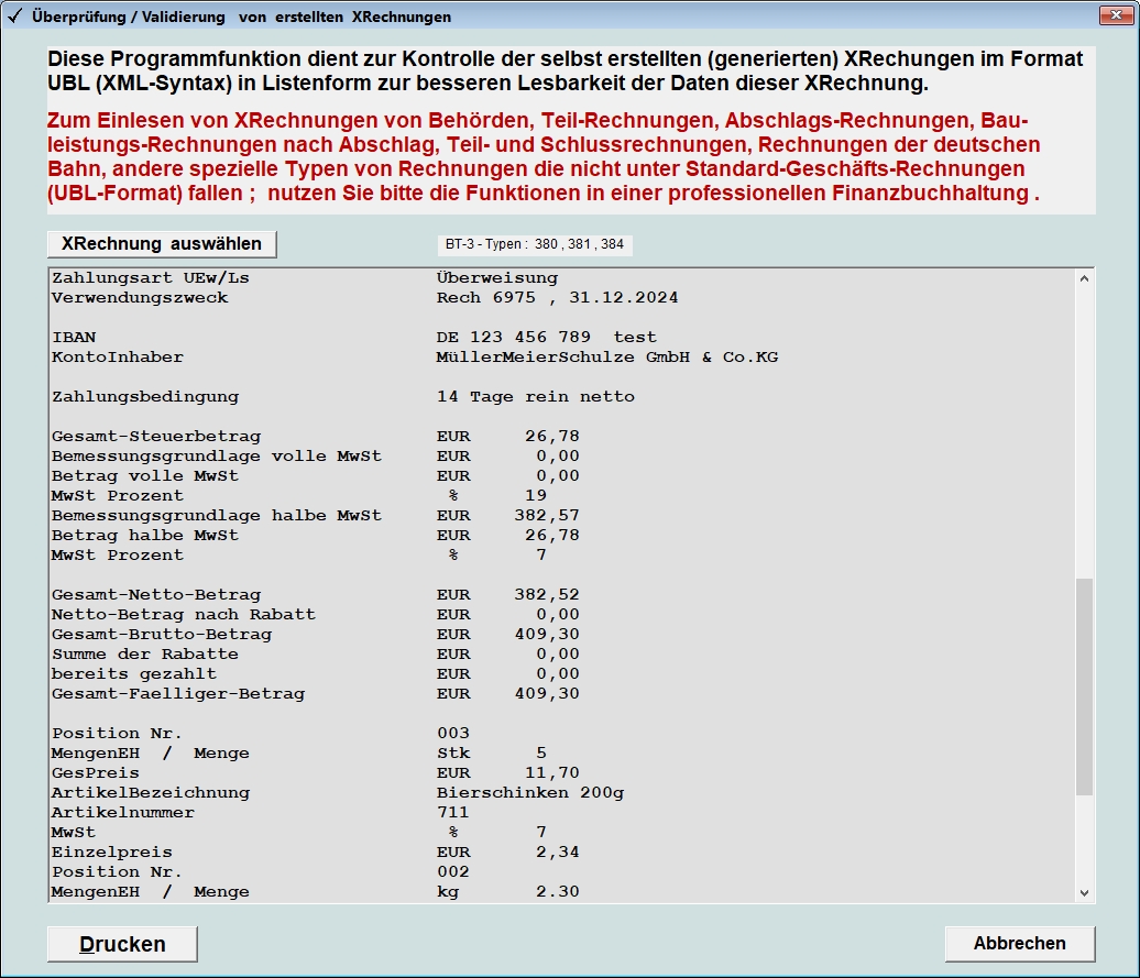 Überprüfung/Validierung einer generierten XRechnung