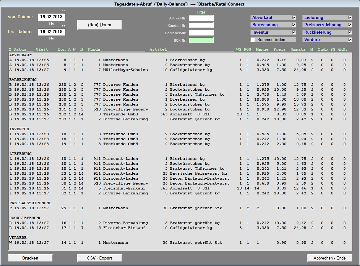 c) Datenübernahme der PLU-Umsätze von Bizerba-WinCWS-Daten zur Gegenrechnung der über WinMeat erfolgten Lieferungen.