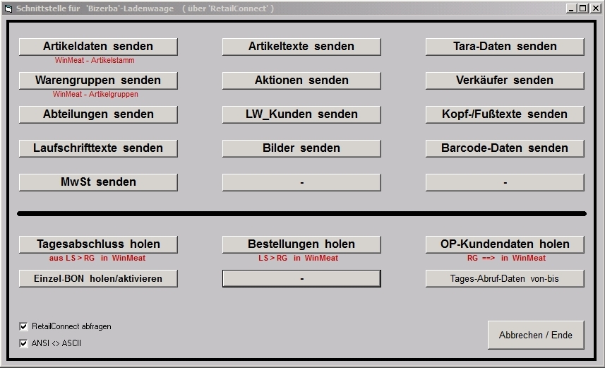 Bizerba -Ladenwaagen über Schnittstellensoftware 'Bizerba-RetailConnect'
