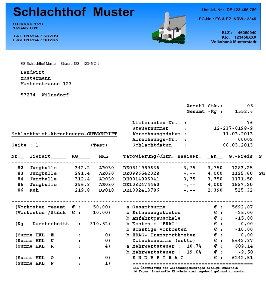 - Schlachtviehabrechnung